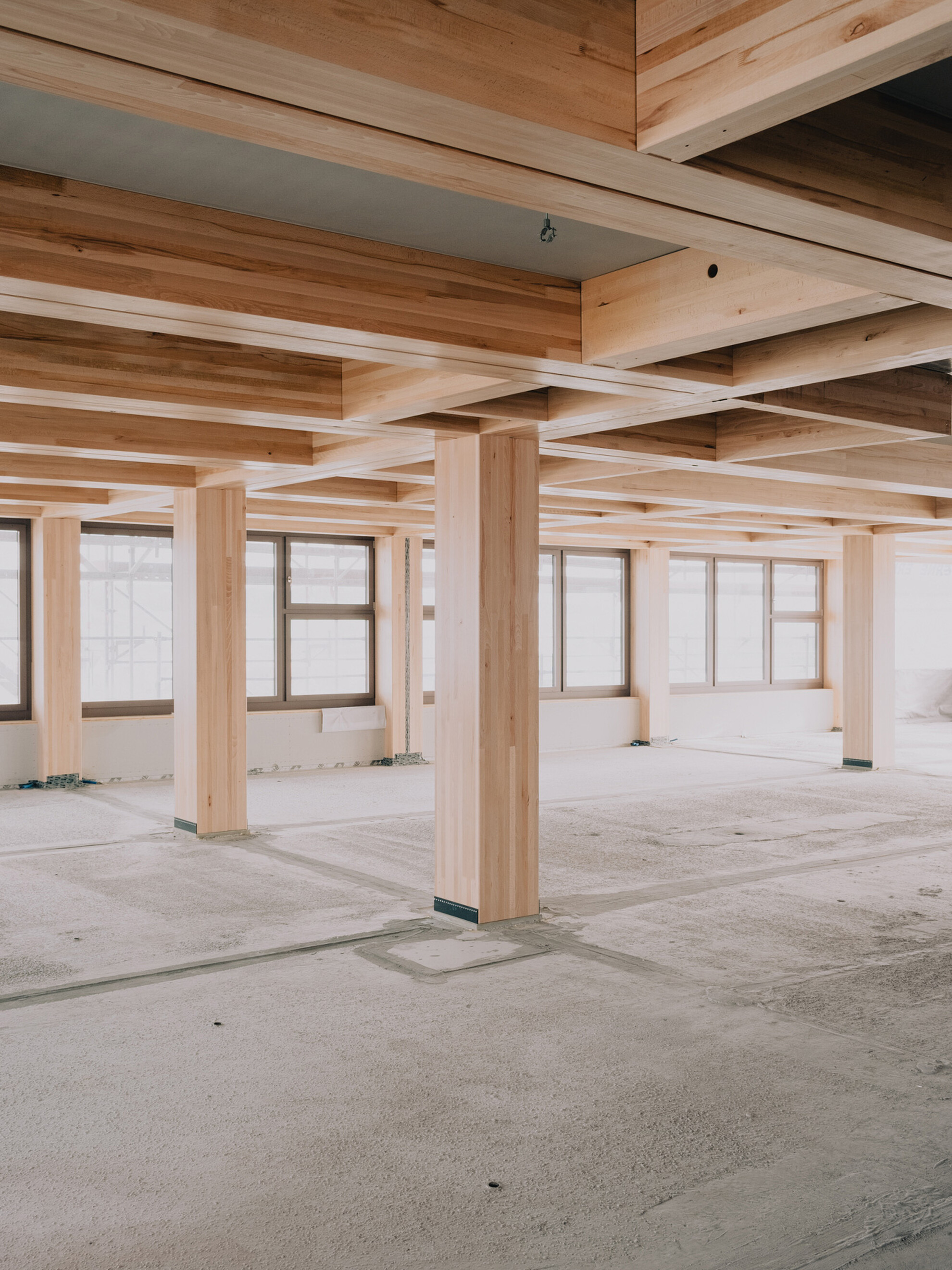 Dazu braucht es eine weitere Schweizer Ressource: die Forschung und Lehre. Diese betreibt Boltshauser gemeinsam mit anderen Professoren an der ETH Zürich. Ebenso werden an der EPFL und an zahlreichen Fachhochschulen in der Schweiz kontinuierlich die Grenzen des Holzbaus ausgelotet. Es geht darum, neue Standards zu definieren, damit sich Holz als Baustoff breit durchsetzen und so Beton vermehrt ergänzen kann. Auch dann, wenn es ganz hoch hinaus geht.